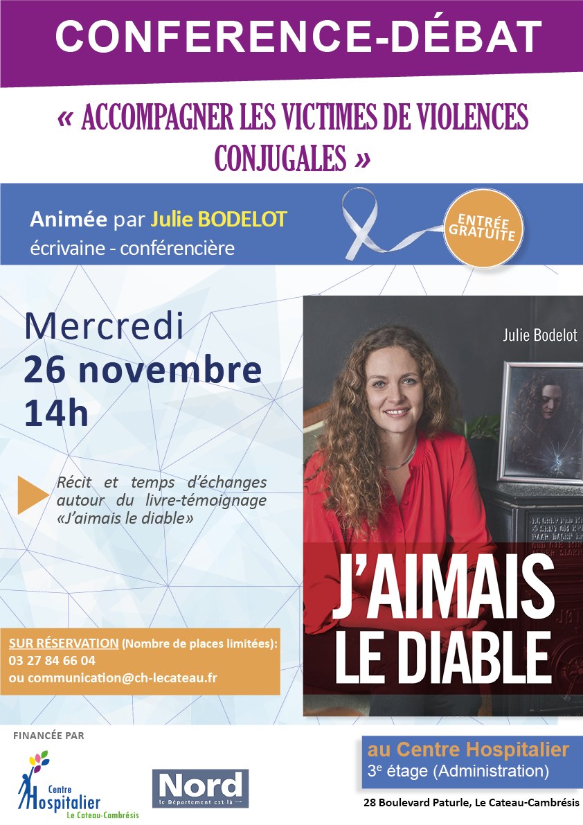 Le lendemain, mercredi 26 novembre à 14h, le Centre Hospitalier a accueilli l’écrivaine et conférencière Julie Bodelot pour une intervention autour de son ouvrage J’aimais le Diable.